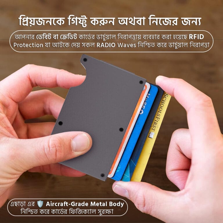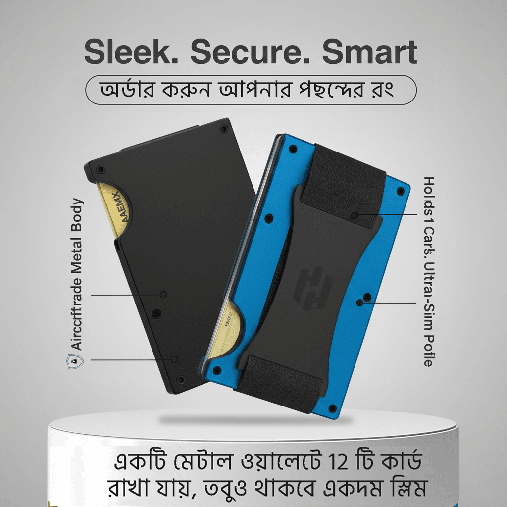 মোটা ও ভারী ওয়ালেট ভুলে যান। এই প্রিমিয়াম মেটাল স্মার্ট ওয়ালেটটি আপনার পকেটে দেবে স্টাইল, কমফোর্ট আর 100% RFID সিকিউরিটি। ১–১২টি কার্ড সহজে রাখুন, কিন্তু ওয়ালেট থাকবে সুপার স্লিম। দৈনন্দিন ব্যবহার, অফিস, ট্রাভেল—সব জায়গাতেই পারফেক্ট!